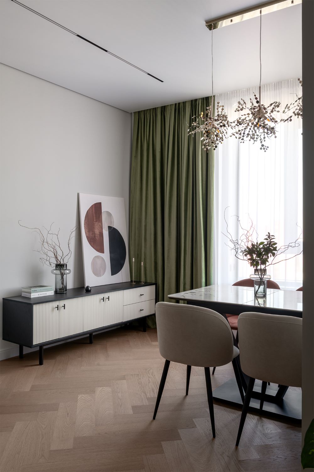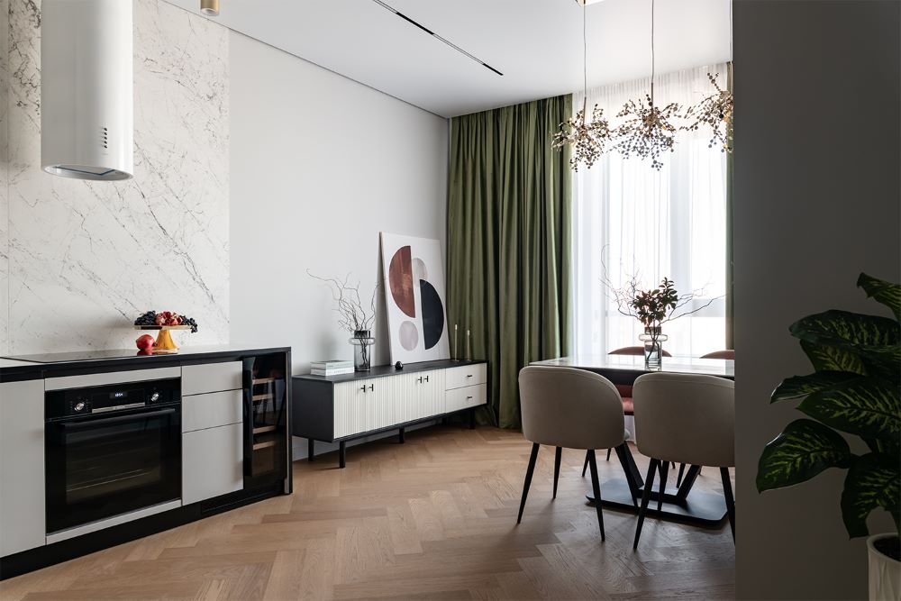 Благодаря этому все комнаты перекликаются между собой, в то же время каждая из них несёт свое настроение и атмосферу.